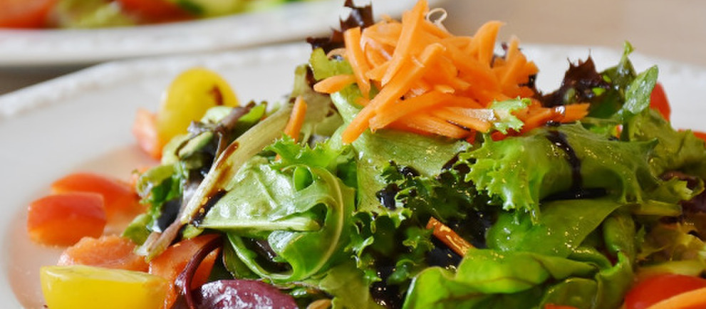 gegrillte Hühnerbruststreifen auf gemischtem Salat und Shrimps